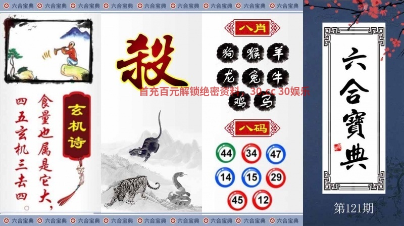 121期金牌七肖【牛猴龙鸡羊蛇马】开:兔15